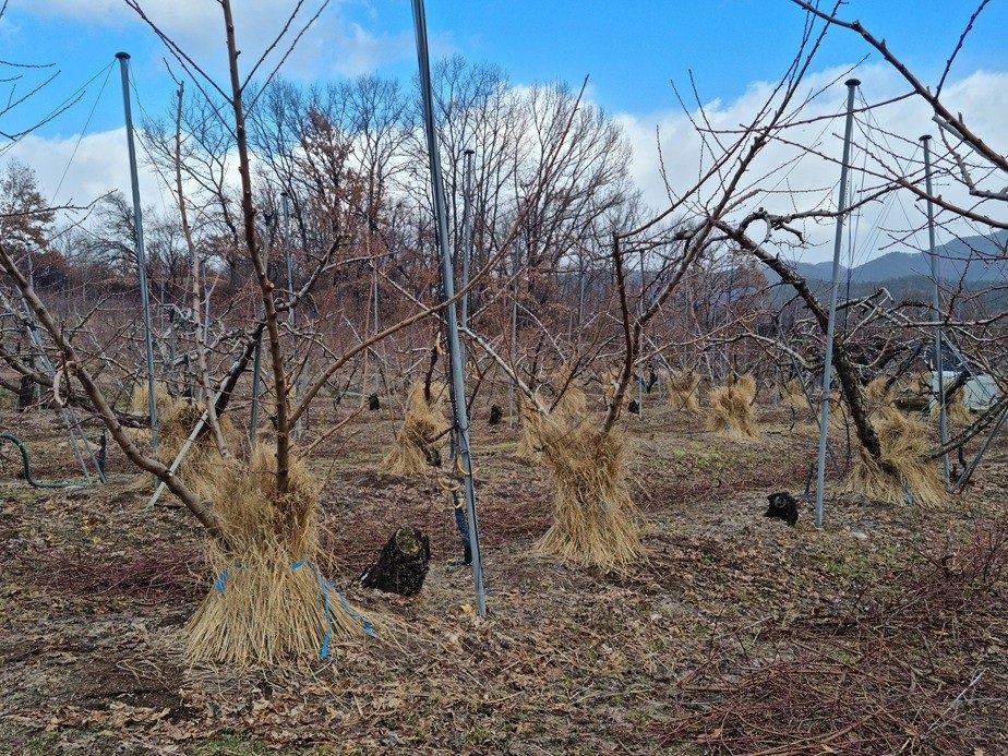 아울러 동해 피해가 우려되는 유목 식재 과수원, 배수가 불량한 과수원, 지난해 가을 조기 낙엽이 발생한 과수원에 대해서는 이런 방한 조치가 꼭 필요하다고 안내했다.