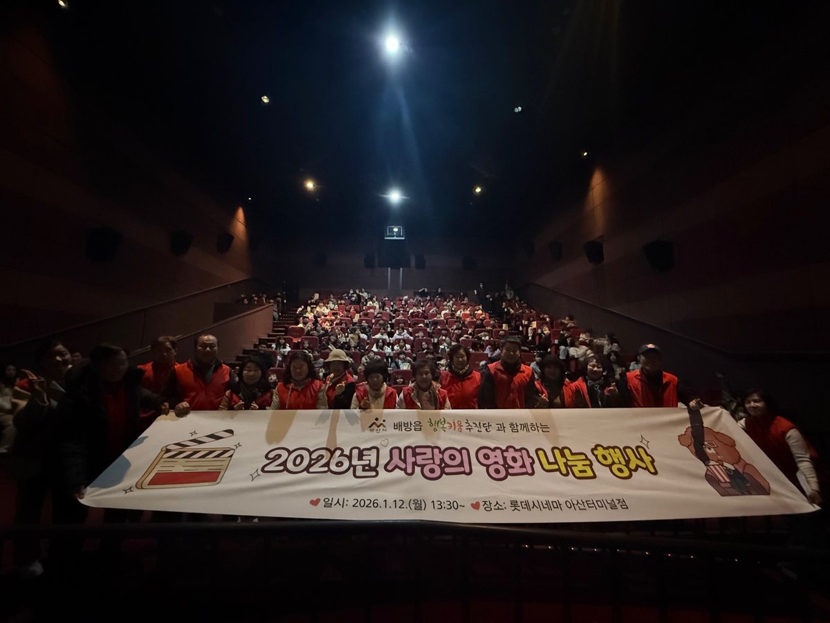 [충청중심뉴스] 아산시 배방읍 행복키움추진단은 지난 12일 롯데시네마 아산터미널점에서 배방읍 소재 지역아동센터 아동들을 대상으로 ‘2026년 사랑의 영화 나눔 행사’를 진행했다.