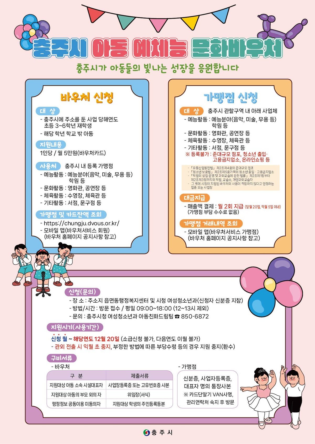 [충청중심뉴스] 충주시가 2023년 도내에서 처음으로 추진한 ‘아동 예체능 문화바우처’사업이 올해로 4년 차를 맞으며 초등학교 3~6학년 아동 가정으로부터 큰 호응을 얻고 있다.