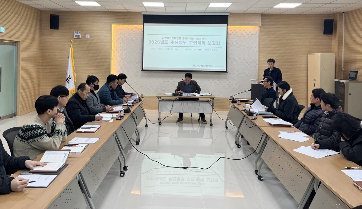 [충청중심뉴스] 지방자치단체조합 충남혁신도시관리본부는 지난 13일 2026년도 주요업무 추진계획 보고회를 열고 올해 주요 역점 사업과 핵심과제를 공유했다.