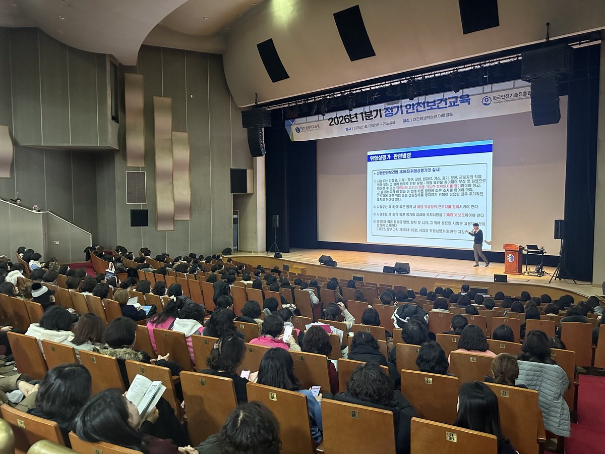 [충청중심뉴스] 대전시교육청은 1월 13일부터 23일까지 총 6회에 걸쳐 대전평생학습관 어울림홀에서 공립학교 및 기관 소속 현업 근로자 2378명을 대상으로 ‘2026년 1분기 정기 안전보건교육’을 실시한다고 밝혔다.
