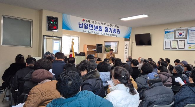[충청중심뉴스] 대한노인회 금산군지회 남일면분회는 지난 13일 남일면 분회 사무실에서 노인회장 등 50여 명이 참석한 가운데 정기총회를 개최했다.