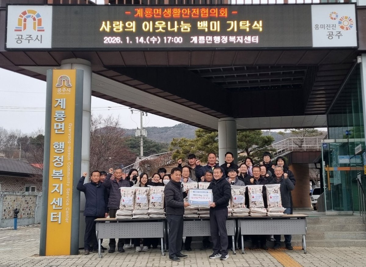 이태하 계룡면생활안전협의회장은 “작은 정성이지만 어려운 이웃들에게 조금이나마 도움이 되길 바라는 마음으로 백미를 기탁했다”며 “앞으로도 지역사회와 함께하는 나눔 활동을 꾸준히 이어가겠다”고 말했다.