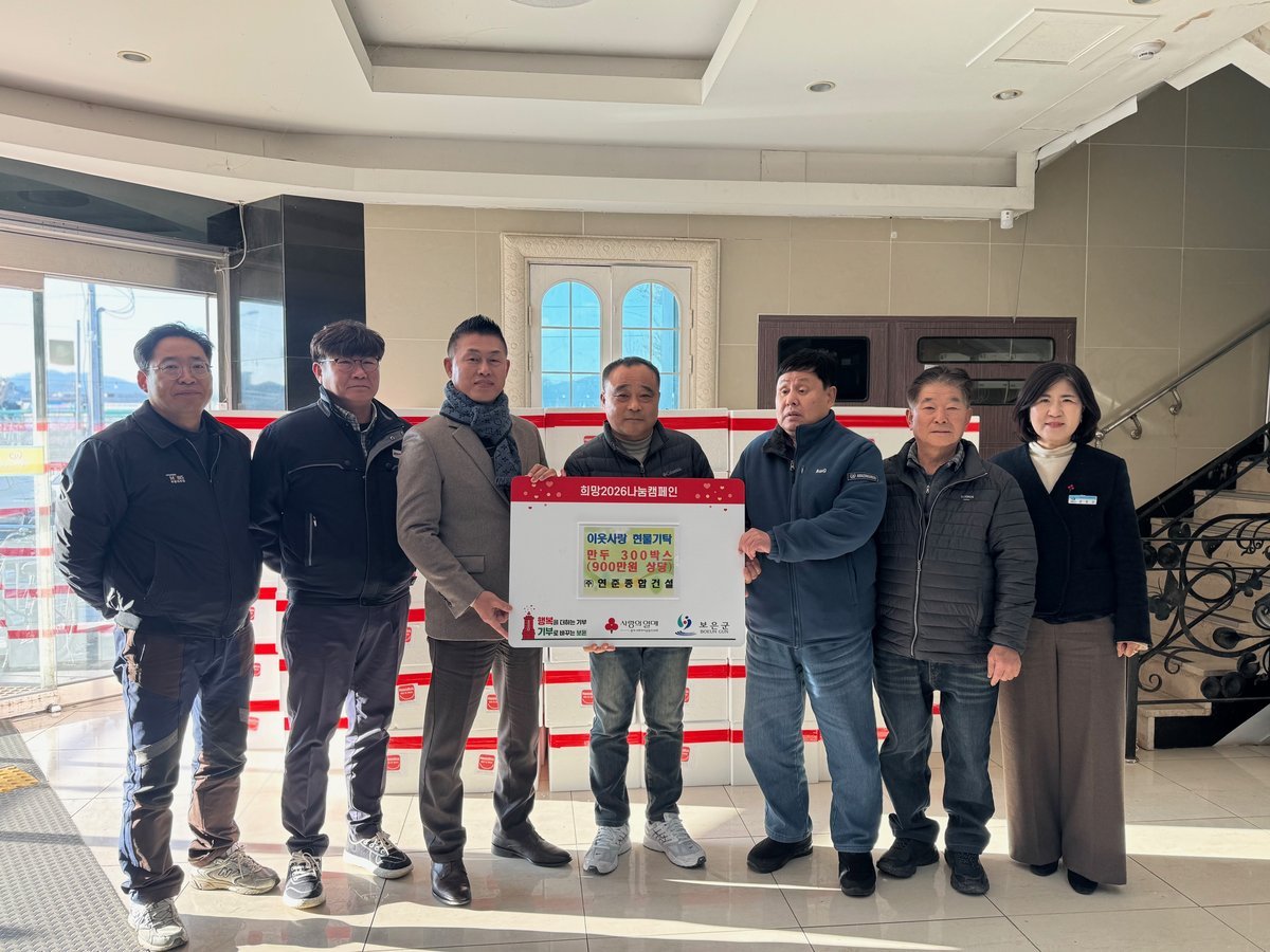 [충청중심뉴스] 충북 보은군은 ㈜연준종합건설 강문수 대표가 지난 15일 장애인연합회에 만두 300박스를 기탁했다고 밝혔다.