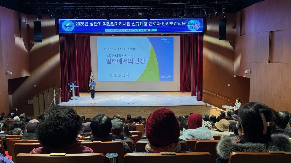 [충청중심뉴스] 예산군은 지난 19일 군청 추사홀에서 예산군 직접일자리사업 근로자와 담당자 등 280여명을 대상으로 산업안전 및 중대재해 예방을 위한 안전보건교육을 실시했다.