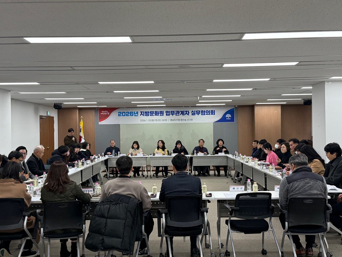 [충청중심뉴스] 충청남도는 20일 충남도 의회 회의실에서 도내 15개 시·군 지방문화원 직원과 담당 공무원 등 50여 명이 참석한 가운데 ‘2026년 지방문화원 업무 관계자 실무회의’를 개최했다.