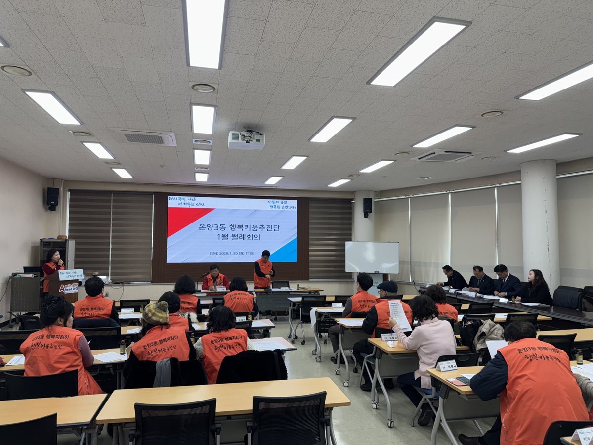 [충청중심뉴스] 온양3동 행복키움추진단은 지난 20일 온양3동 행정복지센터 대회의실에서 2026년 첫 월례회의를 개최했다.