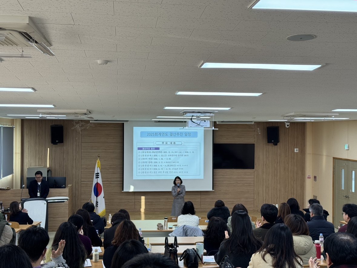 이번 교육은 2025회계연도 충청남도교육비특별회계 도의회 결산 승인을 위한 자료작성 방법을 공유하고 원활한 결산업무 추진에 도움을 주고자 마련됐으며 교육비특별회계 결산서 작성 기준, 예산결산 및 재무제표 기초자료 작성 방법, K-에듀파인 결산시스템 사용법과 사업설명서 작성시 유의사항과 반복적인 오류 사례 등 업무담당자 입장에서 내용을 구성해 안내했다.