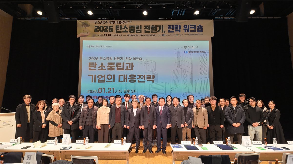[충청중심뉴스] 제천시 탄소중립지원센터는 제천단양상공회의소와 함께 지난 21일 제천예술의전당 커뮤니티아트센터에서 ‘탄소중립과 기업의 대응전략 워크숍’을 개최했다.