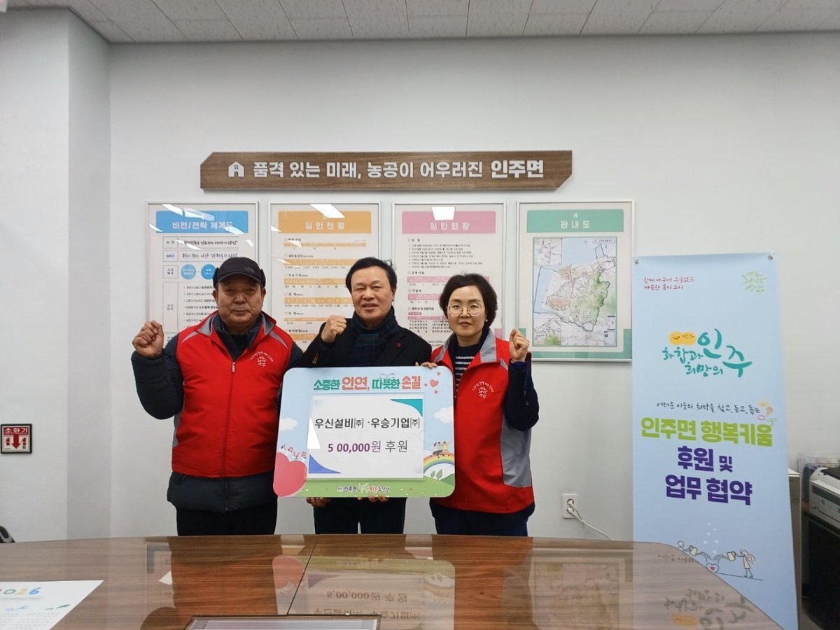 송경숙 인주면장은 “지역사회에 온정을 전해주신 우신설비에 감사드리며 이러한 나눔이 인주면을 더욱 따뜻하게 만드는 데 큰 힘이 되고 있다”고 말했다.