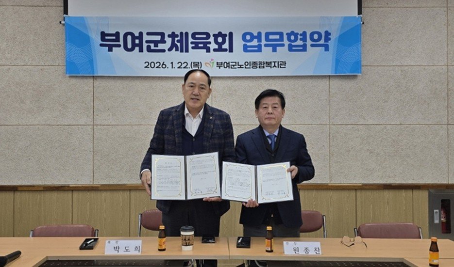 [충청중심뉴스] 부여군노인종합복지관과 부여군체육회는 부여군노인종합복지관에서 어르신 생활체육 활성화와 건강 증진을 위한 업무협약을 체결했다고 27일 밝혔다.