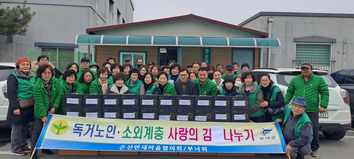 [충청중심뉴스] 부여군 은산면 새마을협의회·부녀회는 새해를 맞이해 추운 날씨 속에서도 소외계층을 위한 ‘사랑의 김 나누기’행사를 진행했다고 28일 밝혔다.