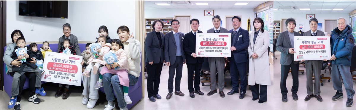 군은 지난 29일 청양군청에서 동화나라어린이집, 더불어민주당 충남도당 청양지역위원회, 청양군낙우회가 참여한 가운데 각각 성금 기탁식을 가졌다.