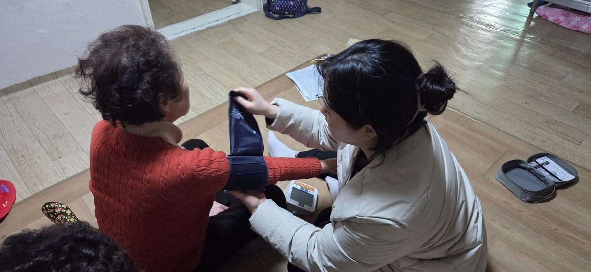 간호직 공무원이 건강 취약계층 가구를 방문해 복약 지도와 혈압·혈당 등 기초 검사를 실시하고 건강 상담을 제공하고 있다.