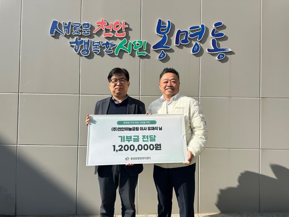 [충청중심뉴스] 천안시 봉명동은 유재석 ㈜천안하늘공원 이사가 취약계층을 위한 후원금 120만원을 기탁했다고 2일 밝혔다.