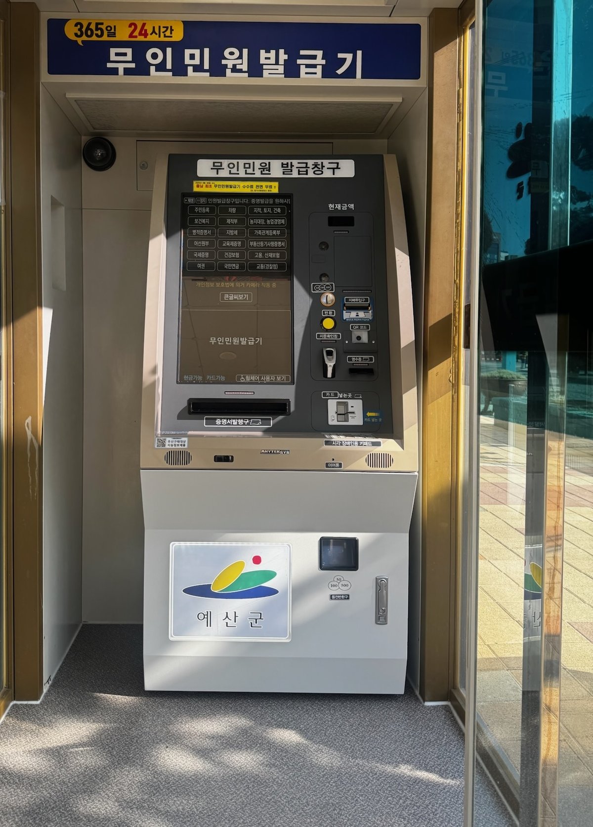 한편 군은 2025년 9월 30일부터 충청남도 최초로 무인민원발급기 발급 수수료를 무료화했으며 민원 처리 비용 부담 완화와 접근성 높은 민원서비스 제공을 위해 지속적으로 노력하고 있다.