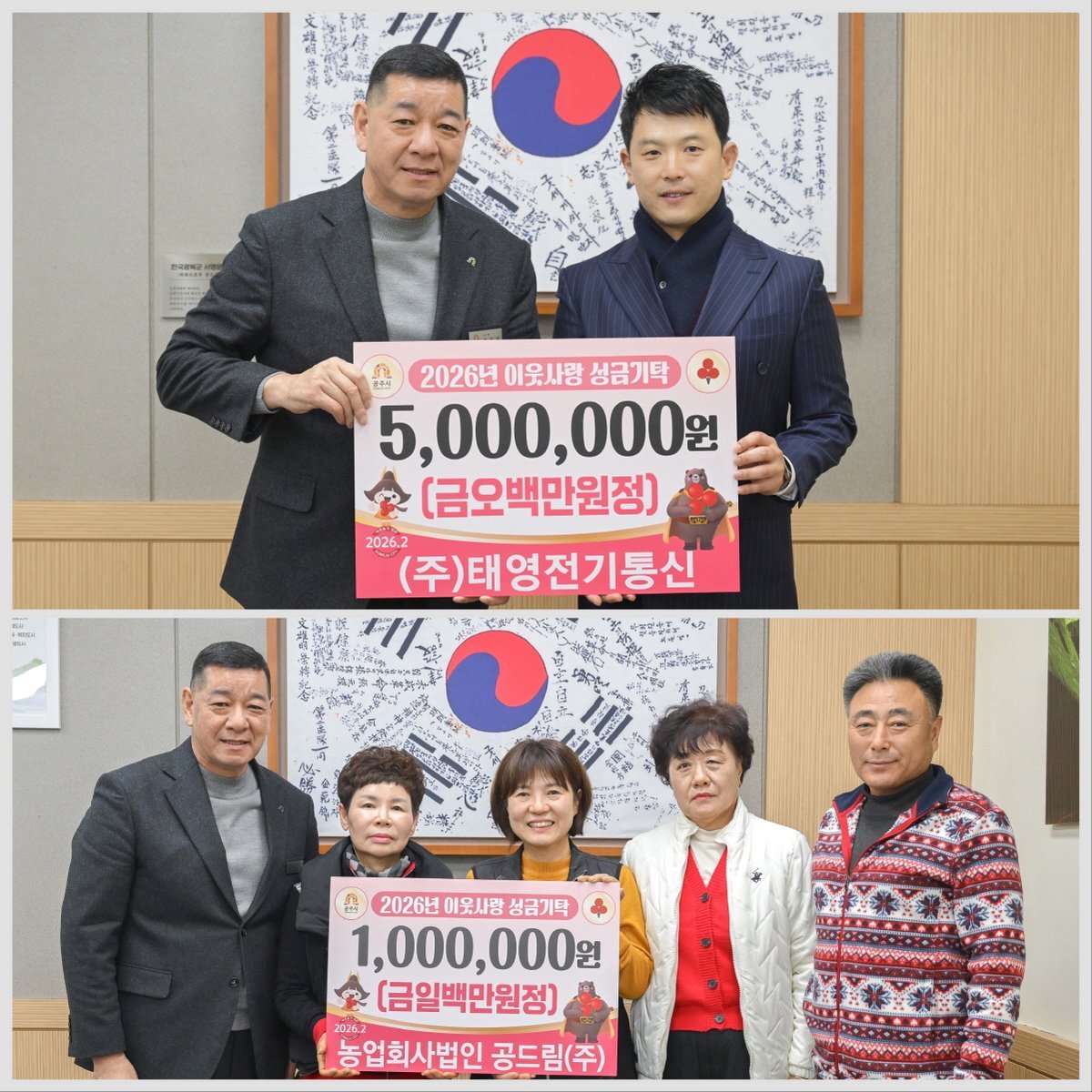최원철 시장은 “지역 곳곳에서 이어지는 따뜻한 기부가 어려운 이웃들에게 큰 힘이 되고 있다”며 “기탁해 주신 소중한 성금은 꼭 필요한 곳에 투명하고 공정하게 사용해 시민 모두가 체감할 수 있는 나눔으로 이어지도록 하겠다”고 말했다.