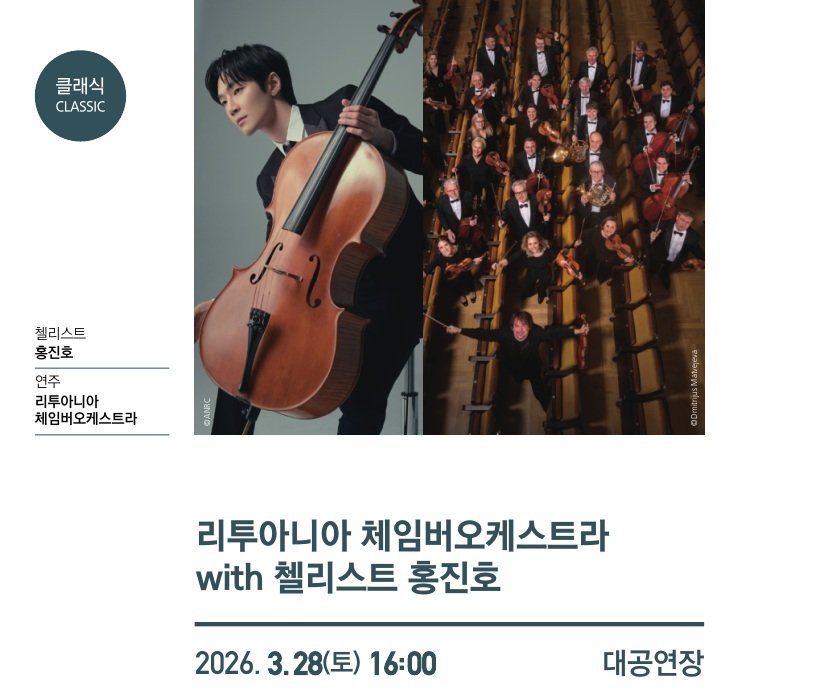 [충청중심뉴스] 천안문화재단은 오는 3월 28일 오후 4시 천안예술의전당 대공연장에서 ‘리투아니아 체임버 오케스트라 with 첼리스트 홍진호’공연을 개최한다고 5일 밝혔다.