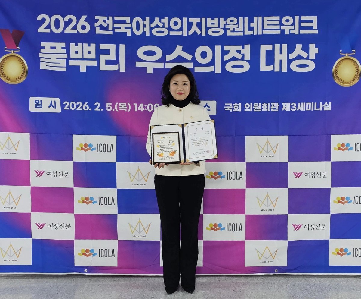 [충청중심뉴스] 천안시의회 유수희 의원이 전국여성지방의원네트워크가 주최한 '2026 풀뿌리 우수의정사례 공모'에서 생활정치 분야 우수상을 수상했다.