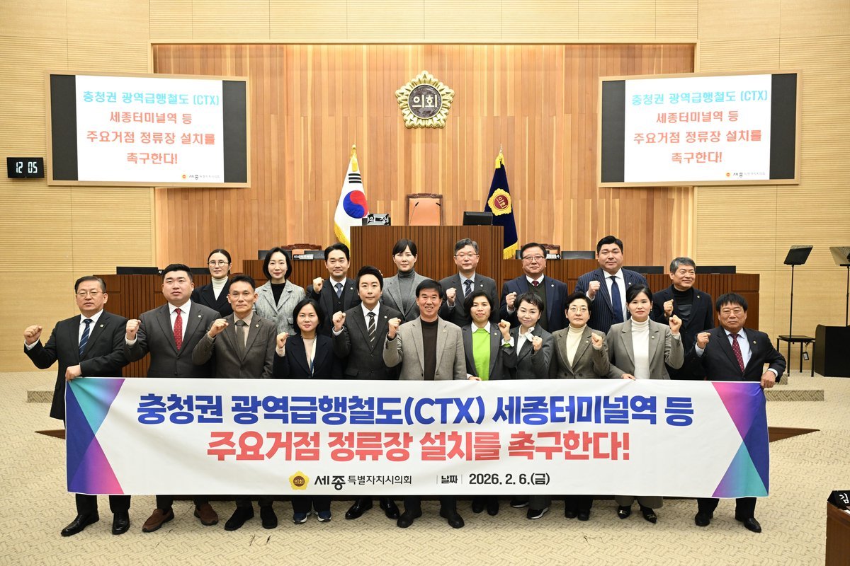 [충청중심뉴스] 세종특별자치시의회는 6일, 제103회 임시회 제2차 본회의에서 국가균형발전의 상징이자 실질적인 행정수도로 도약하기 위한 ‘충청권 광역급행철도 주요 거점 정류장 설치 촉구 결의안’을 채택했다.