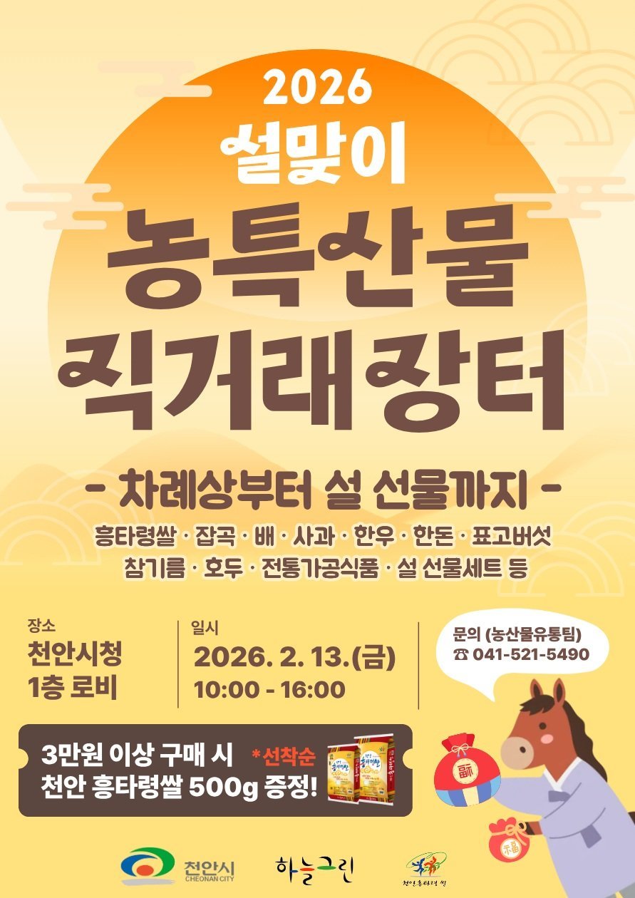 특히 행사 당일 3만 원 이상 구매 고객에게는 천안흥타령쌀 500g을 선착순으로 증정해 명절 장바구니 부담은 덜고, 지역 농산물 소비를 함께 유도할 계획이다.