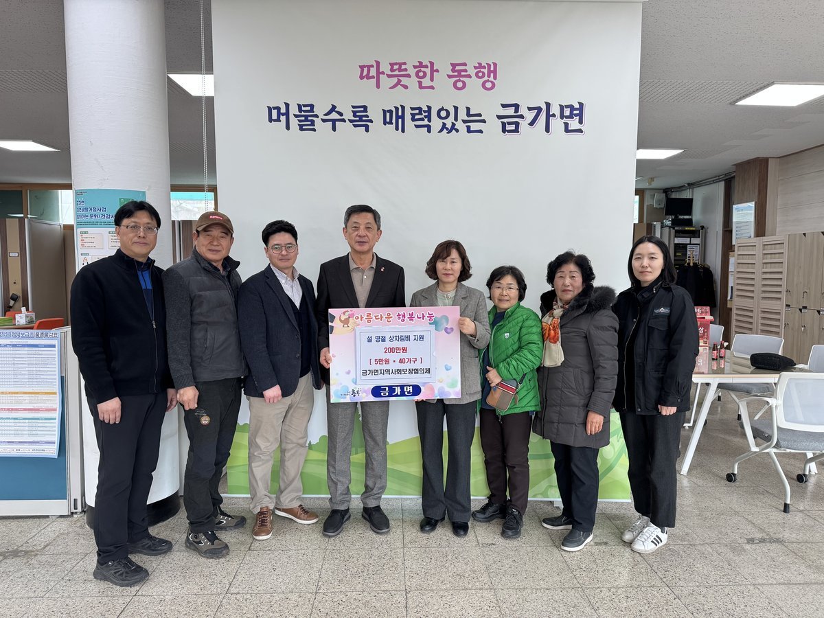 금가면 지역사회보장협의체는 11일 설 명절을 맞아 관내 어려운 이웃 40가구에 충주사랑상품권 5만원씩을 전달하는 ‘설 명절 상차림비 지원 사업’을 시행했다.