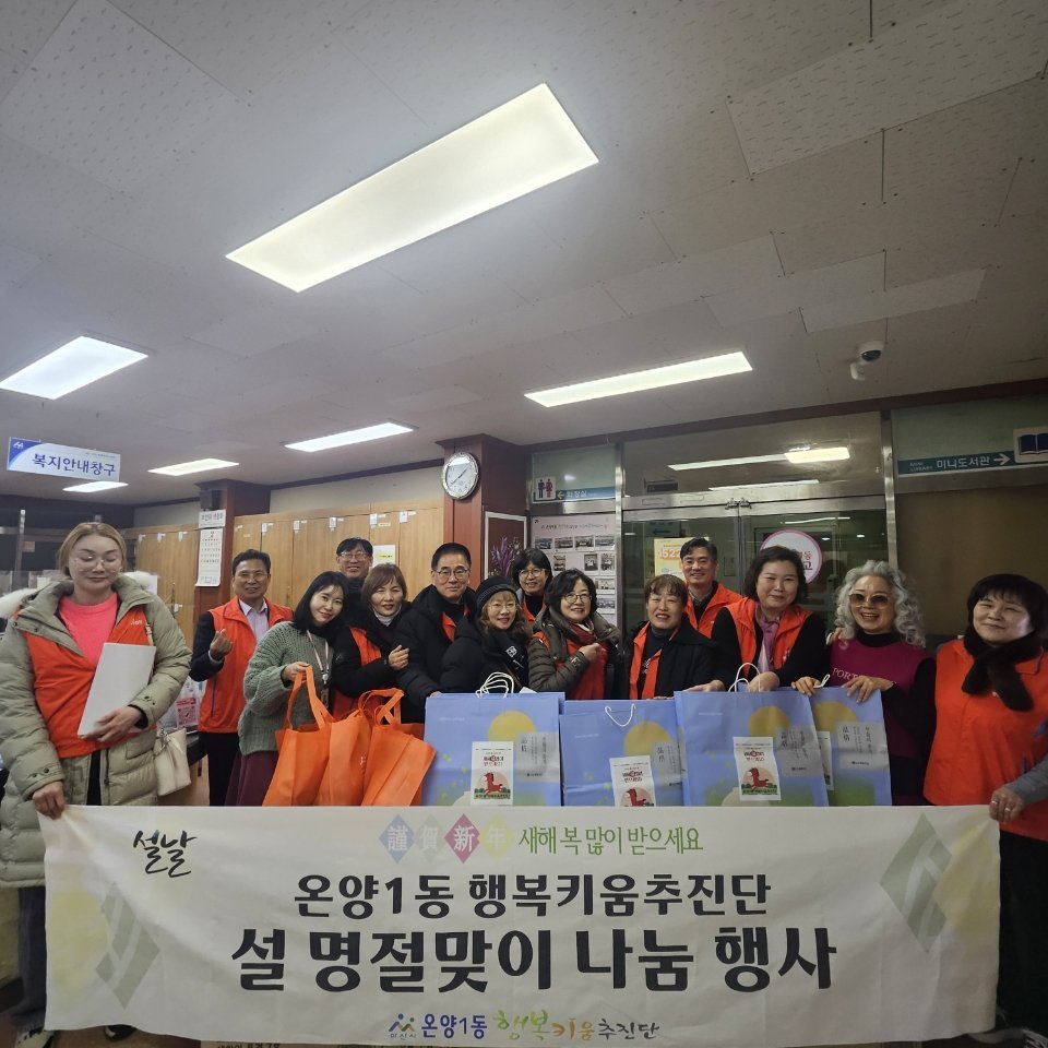 심현성 온양1동장은 "설 명절을 맞아 이웃들과 따뜻한 마음을 나눌 수 있어 뜻깊게 생각한다"며 "앞으로도 행복키움추진단과 함께 민관이 협력해 어려운 이웃들이 체감할 수 있는 복지 지원에 최선을 다하겠다"고 밝혔다.