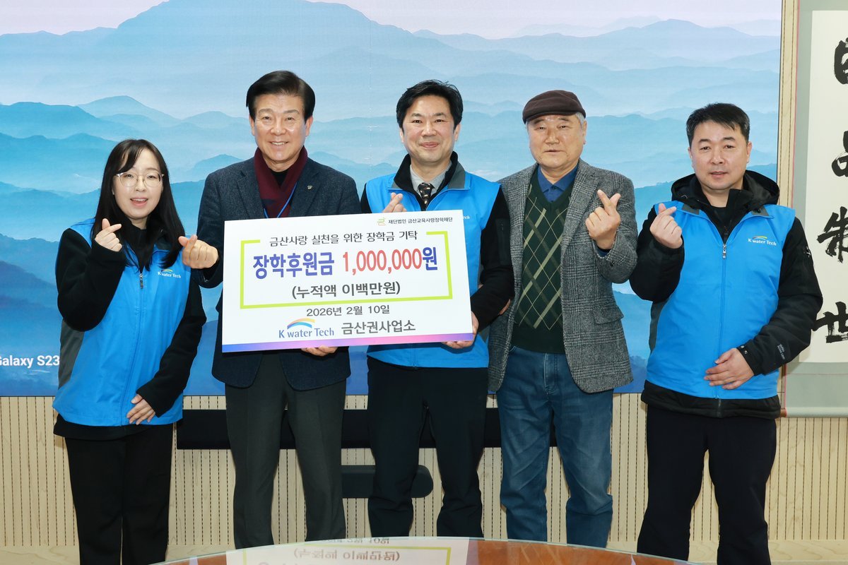 박범인 금산군수는 "지역 인재 양성을 위한 케이워터기술의 지속적인 관심과 나눔에 감사드린다"며 "기탁금은 금산교육사랑장학재단을 통해 학생들의 꿈과 미래를 키우는 소중한 밑거름이 될 것"이라고 전했다.
