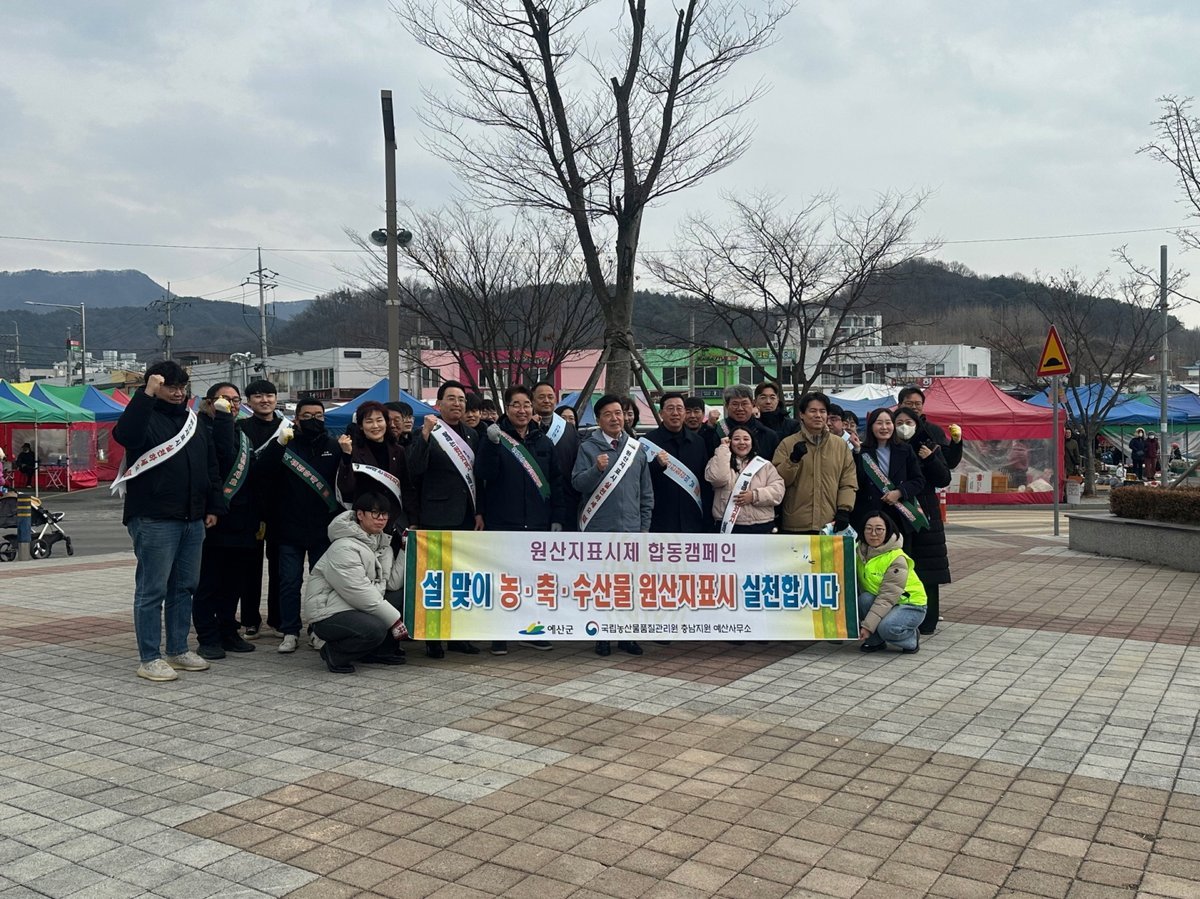 [충청중심뉴스] 예산군은 지난 2월 10일 예산시장에서 국립농산물품질관리원 충남지원 예산사무소, 소비자교육중앙회 예산군지회와 함께 올바른 농축수산물 원산지 표시 합동 캠페인을 펼쳤다.