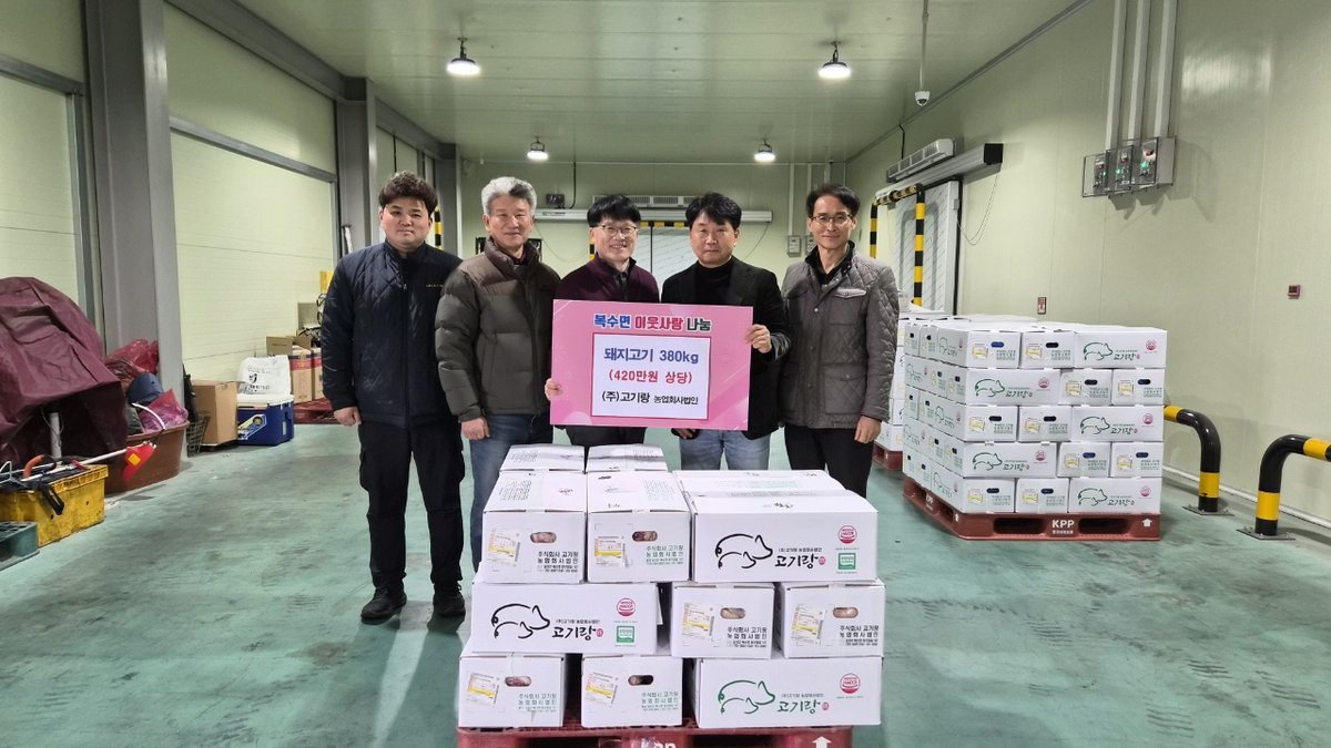 [충청중심뉴스] 금산군 복수면에 소재한 ㈜고기랑 농업회사법인은 지난 11일 설 명절을 맞아 지역의 어려운 이웃을 위한 이웃사랑을 실천하며 400만원 상당 돼지고기를 기탁했다.