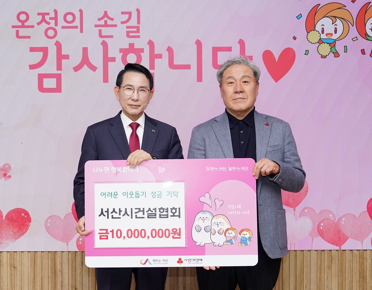 시는 이날 시청 시장실에서 이완섭 서산시장, 박영종 서산시건설협회장 등이 참석한 가운데 기탁식을 개최했다.