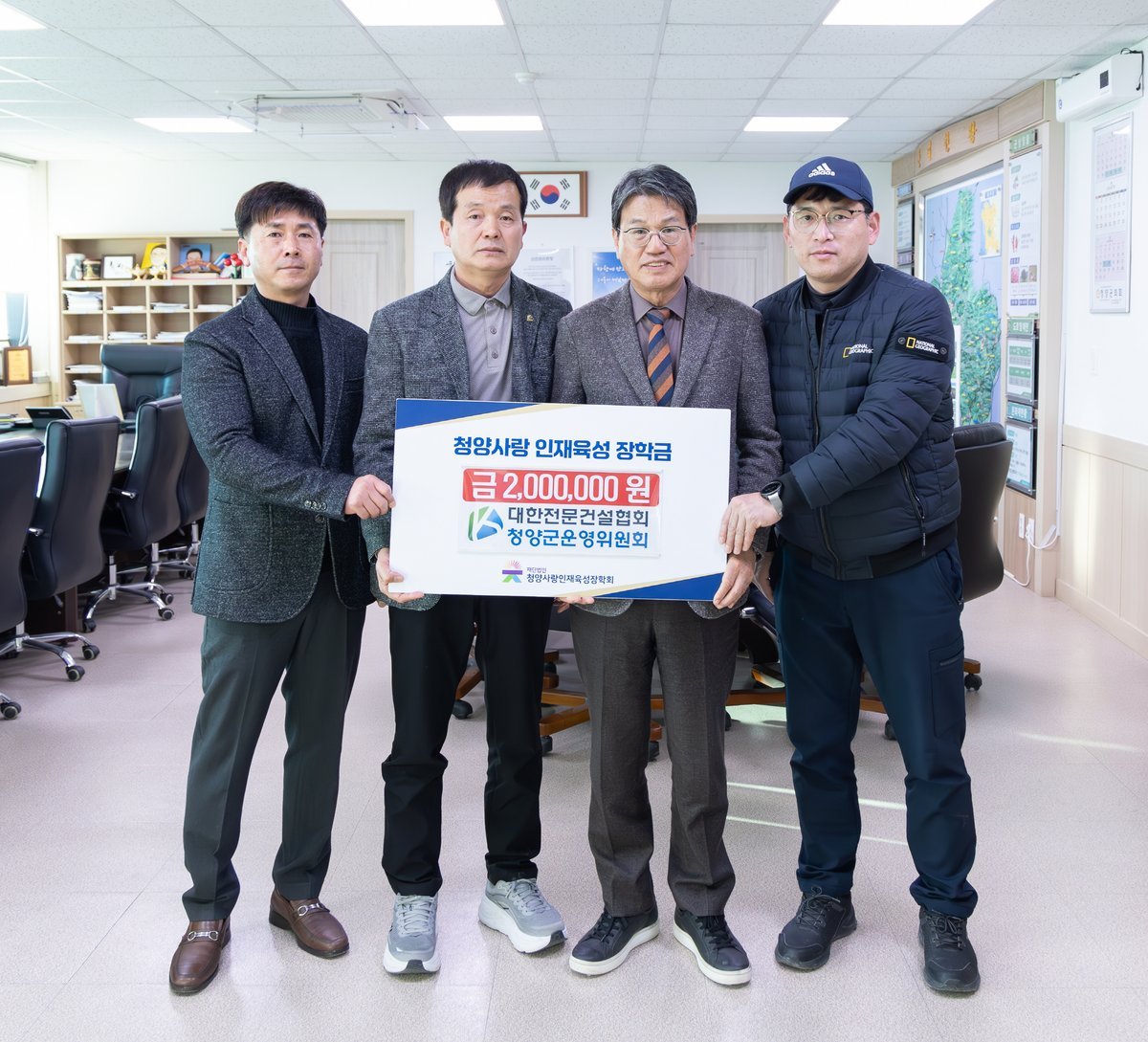대한전문건설협회 세종·충남도회 청양군운영위원회는 지난 12일 청양군청을 방문해 지역 인재 육성에 써달라며 장학금 200만원을 전달했다.