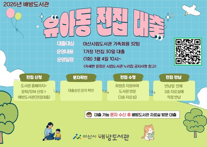 [충청중심뉴스] 아산시 배방도서관이 3월부터 유·아동을 대상으로 전집 대출 서비스를 확대 운영한다.