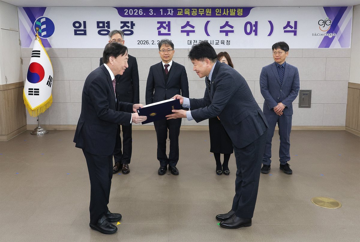 앞서 지난 2월 5일, 대전시교육청은 2026년 3월 1일자 정기 인사를 통해 교장, 교감, 교육전문직원의 승진 및 전직, 전보 352명과 유‧초등 수석교사․교사 전보 1,151명, 중등 수석교사․교사 전보 944명 등 총 2,447명을 인사 발령한 바 있다.