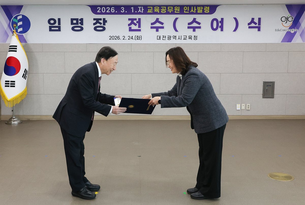 [충청중심뉴스] 대전시교육청은 2월 24일에 2026년 3월 1일자 인사발령에 따른 ‘2026학년도 늘봄지원실장 임명장 수여식’을 개최했다고 밝혔다.