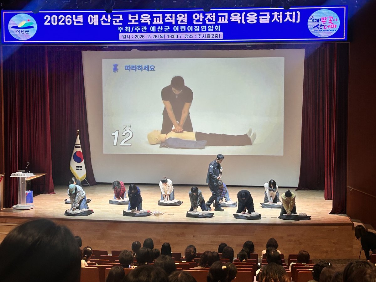 [충청중심뉴스] 예산군은 26일 예산군청 추사홀에서 예산군 관내 보육교직원 250여명을 대상으로 심폐소생술 등 안전교육을 실시했다.