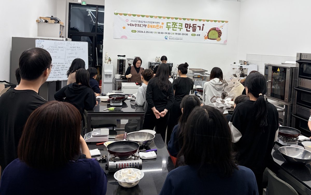 이번 프로그램은 홍성군 내 위기청소년과 보호자 16가정을 대상으로 진행됐으며 가족이 함께 두바이쫀득쿠키 만들기 체험을 통해 소통과 공감의 시간을 가졌다.