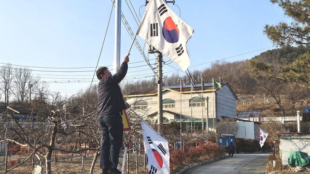 삼일절을 맞아 새로 단 태극기가 마을 곳곳에서 의미 있게 펄럭이고 있다.