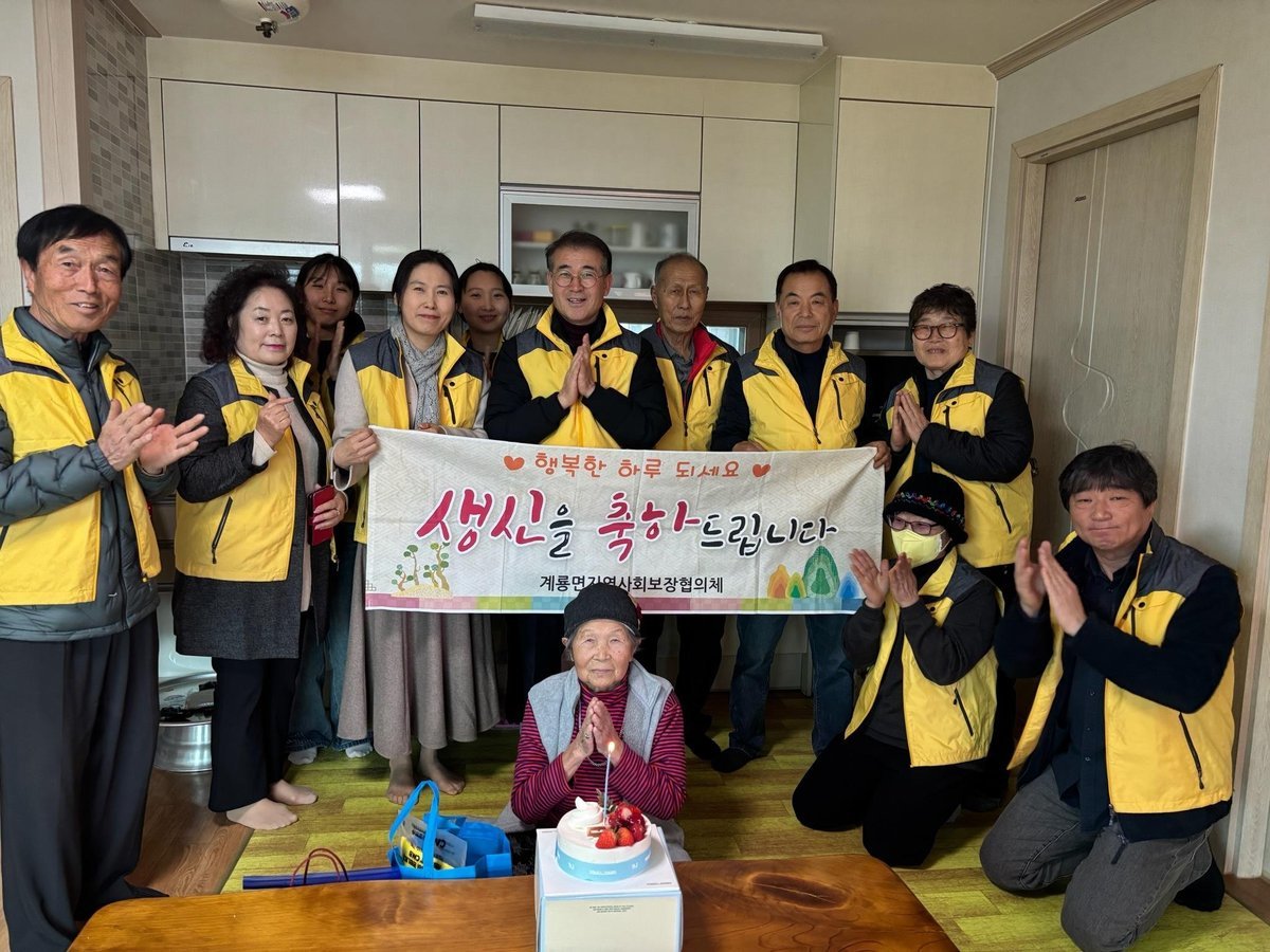 서은원 계룡면장은 “지역사회가 함께 어르신의 생신을 축하해 드릴 수 있어 매우 뜻깊게 생각한다”며 “앞으로도 어르신들이 외롭지 않도록 세심한 복지 행정을 펼치고 촘촘한 지역 돌봄 체계를 구축하는 데 최선을 다하겠다”고 말했다.