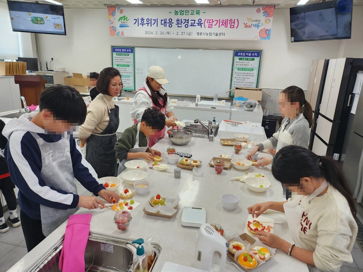 [충청중심뉴스] 충남 계룡시는 지난 25일부터 26일까지 총 4회에 걸쳐 계룡시 지역아동센터 4곳의 아동 111명을 대상으로 ‘딸기’를 주제로 한 환경교육 및 농업 관련 분야 진로 체험을 운영해 큰 호응을 얻었다.