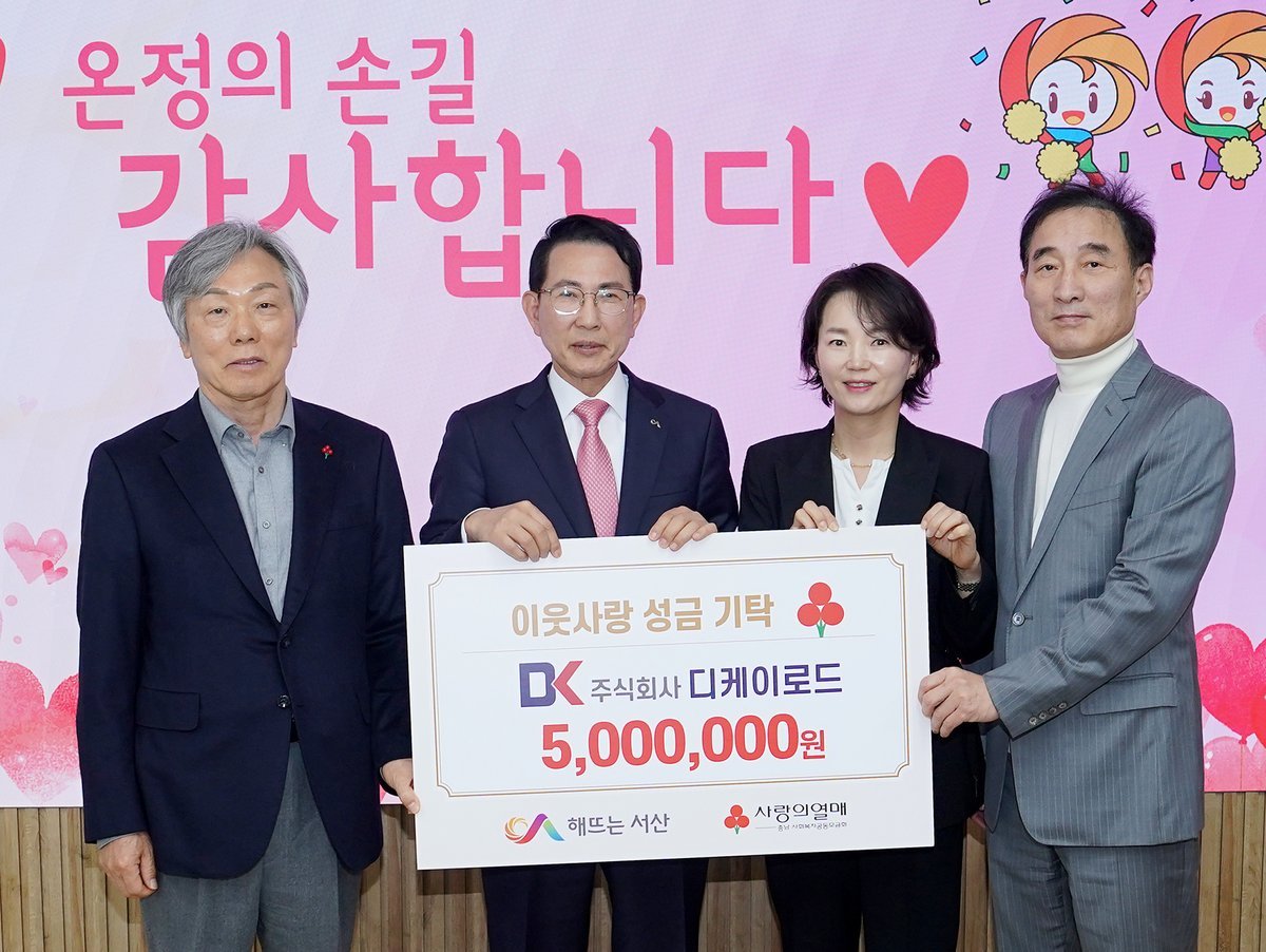 한편 디케이로드는 골재, 벽돌 및 시멘트 도매업을 하는 기업으로 지난 2023년 해미면으로 공장을 이전한 후 매년 어려운 이웃을 위한 기부를 이어오고 있다.
