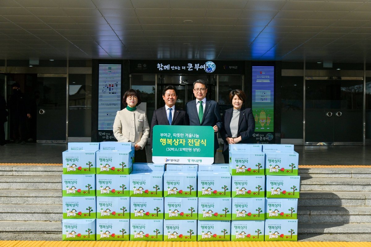 [충청중심뉴스] 하나은행 충청하나그룹은 부여군 취약계층을 위해 생필품 꾸러미 ‘행복상자’50박스를 부여군에 기탁했다고 3일 밝혔다.