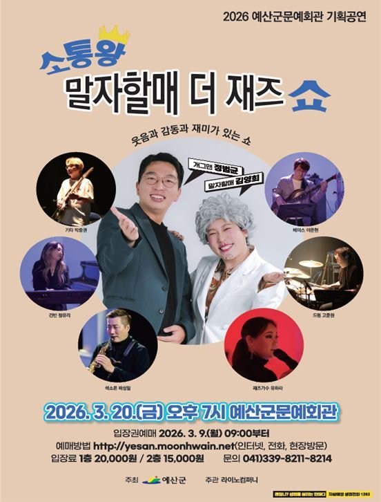 [충청중심뉴스] 예산군은 오는 3월 20일 저녁 7시 문예회관 공연장에서 ‘소통왕 말자할매 더 재즈 쇼’토크 콘서트를 개최한다고 밝혔다.