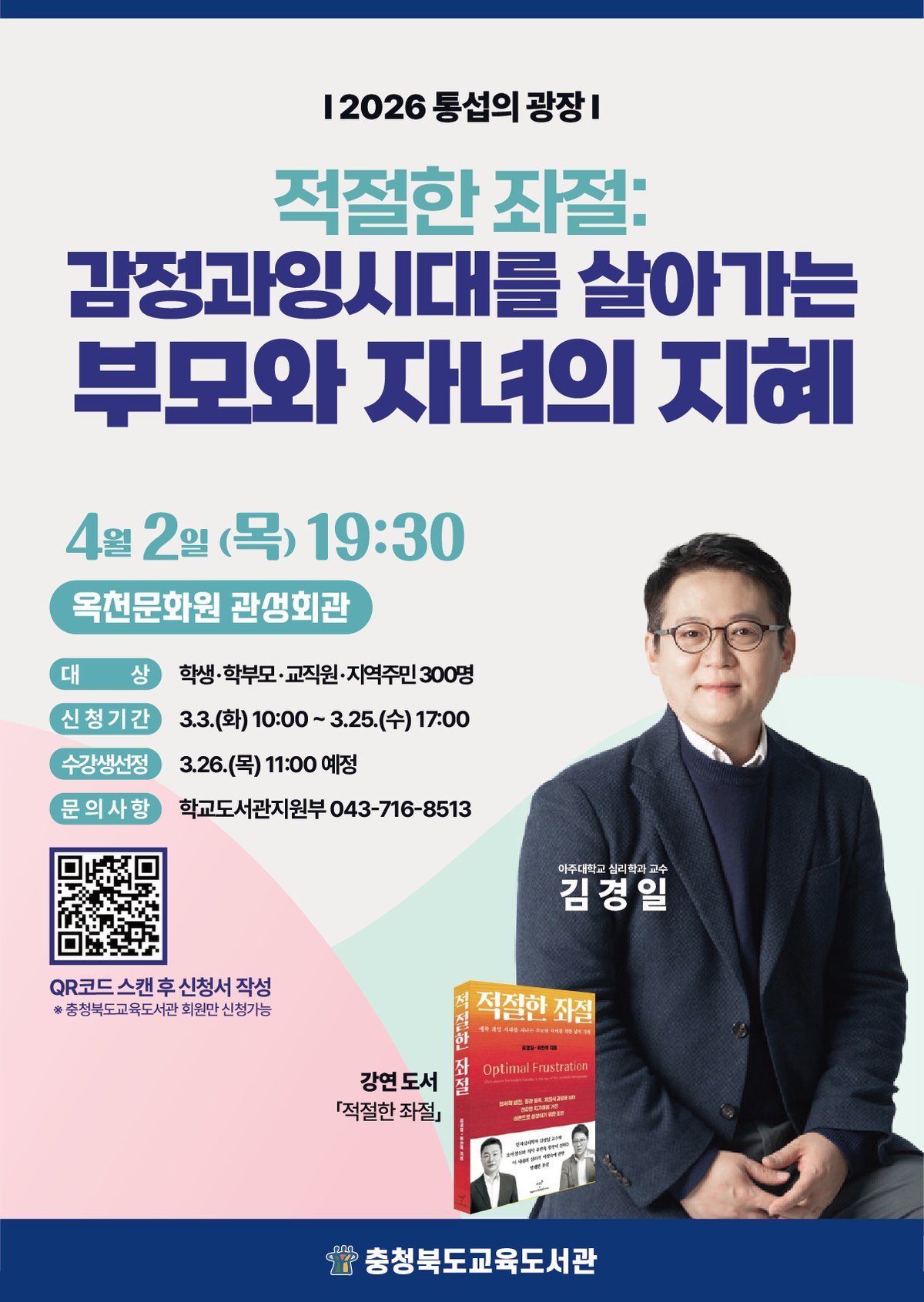 노재경 교육도서관장은 “이번 강연이 좌절과 실패를 새로운 시각으로 바라보고 스스로를 이해하는 힘을 기르는 계기가 되길 바란다”며 “앞으로도 다양한 분야의 전문가들과 함께 삶의 지혜를 나누는 인문 강연을 지속적으로 운영해 나가겠다”고 말했다.