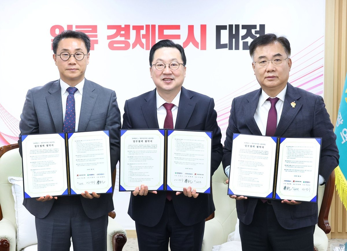 [충청중심뉴스] 대전시는 6일 시청 10층 응접실에서 대전관광공사, 충청지방우정청과 함께 ‘꿈돌이 느린우체통’ 사업 추진을 위한 공동브랜딩 업무협약을 체결했다.