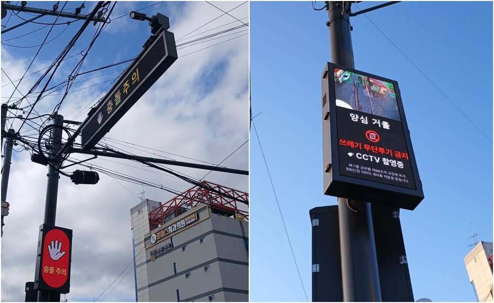 교통 사각지대에는 실시간 전광판을 통해 차량이 접근 중임을 알려주어 교통사고를 예방하는 ‘스마트알리미’가 설치됐다.