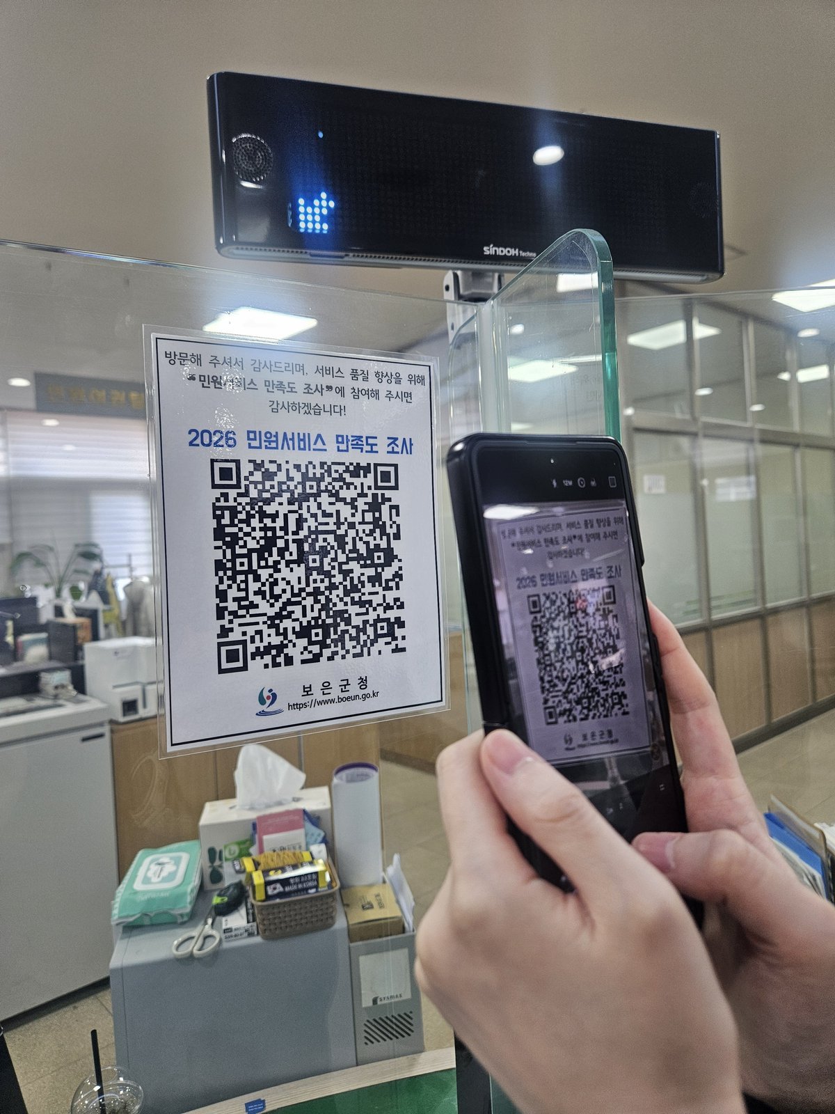 [충청중심뉴스] 보은군은 민원행정서비스의 품질 향상을 위해 3월부터 12월까지 ‘QR코드 및 문자메시지 등을 활용한 민원행정서비스 만족도 조사’를 실시한다고 밝혔다.