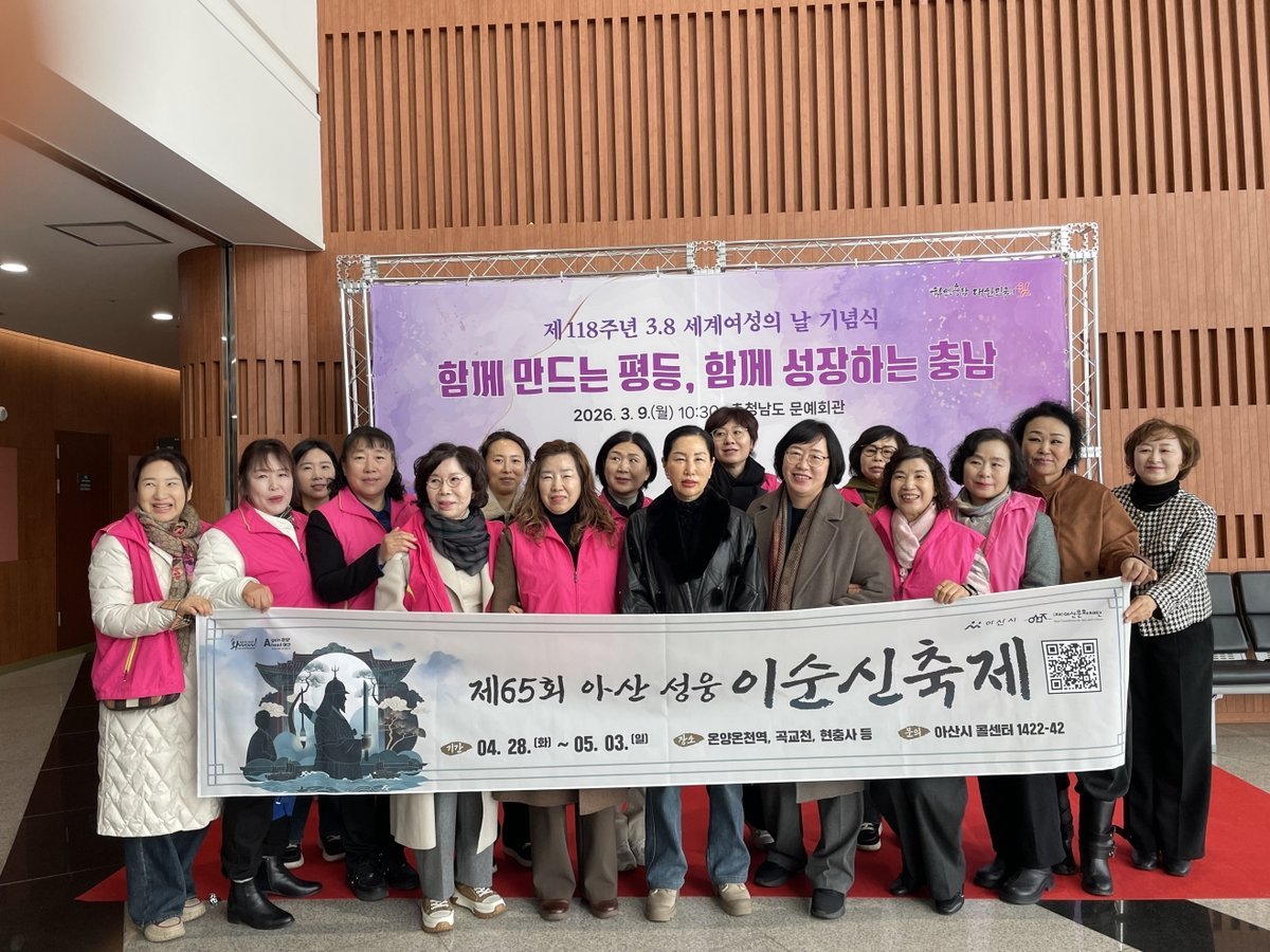 [충청중심뉴스] 아산시여성단체협의회는 9일 제118주년 3 8 세계여성의날을 기념해 열린 충청남도 및 아산시 기념행사에 참석해 성평등 가치 확산과 여성의 사회적 역할 강화를 위한 의지를 다졌다.