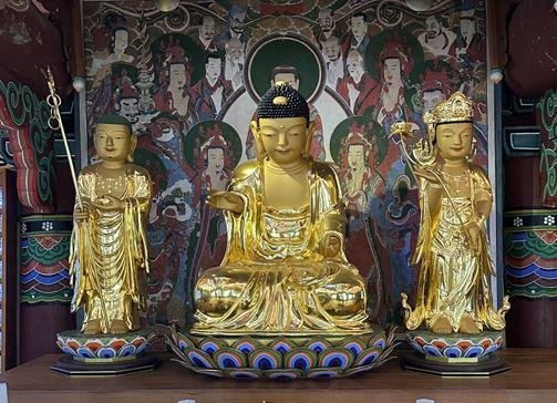 ‘서산당 휴정’, ‘사명당 유정’, ‘기허당 영규’는 임진왜란 당시 승병을 이끌며 큰 공을 세웠는데, 그들의 충의와 업적이 19세기 조선 사회에서도 높이 평가돼 진영이 그려졌다.