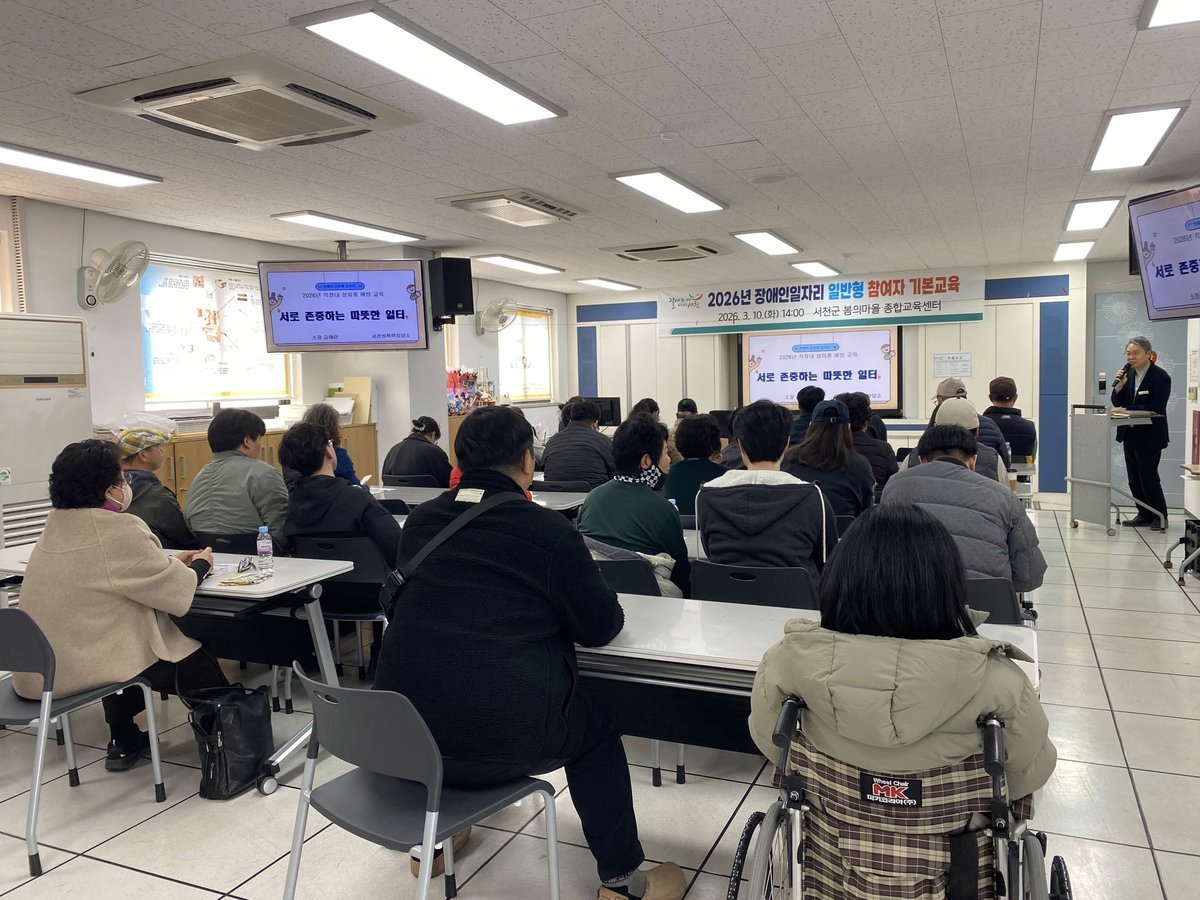 [충청중심뉴스] 서천군은 지난 10일 장애인일자리사업 일반형 참여자를 대상으로 2026년 장애인일자리 참여자 기본교육을 진행했다.
